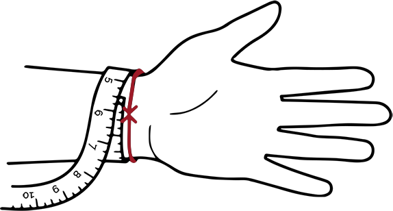 Measure the circumference of your wrist by fitting it right above the wrist bone.