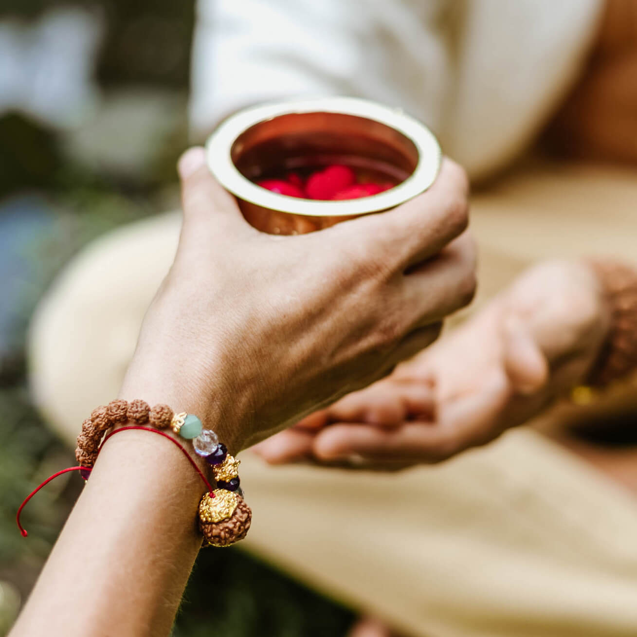 To receive the greatest benefit from your power bracelet, we recommend wearing during a mantra meditation practice, using authentic, high-vibrational Vedic mantras. This will amplify and continue to grow the power of your already powerfully activated and blessed mala bracelet. Your sacred power objects acts as a storage vessel for divine power, so it’s of immense, personal benefit to keep charging your mala through active meditation practice and participation in important spiritual ceremonies, devotional rituals and heartful prayer.