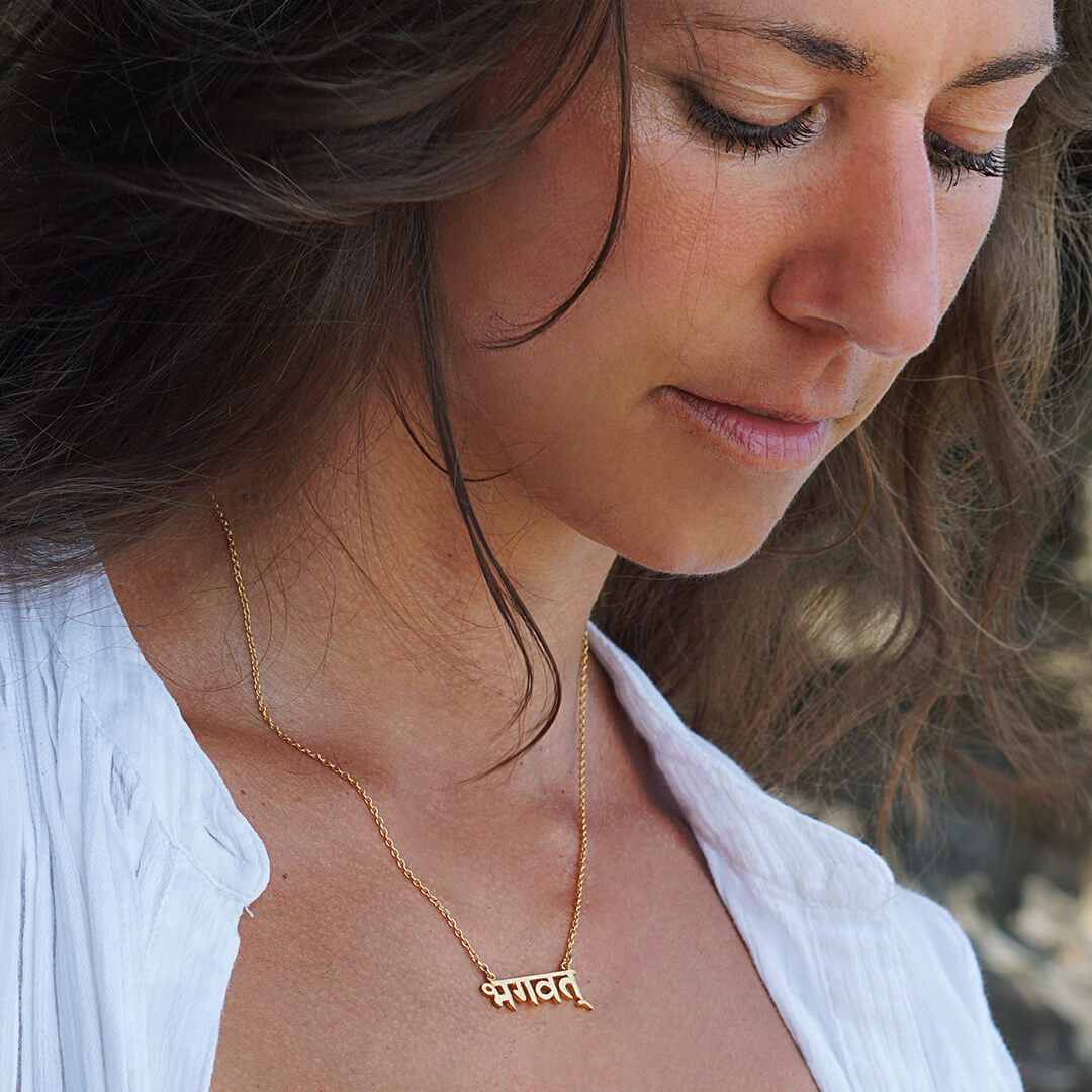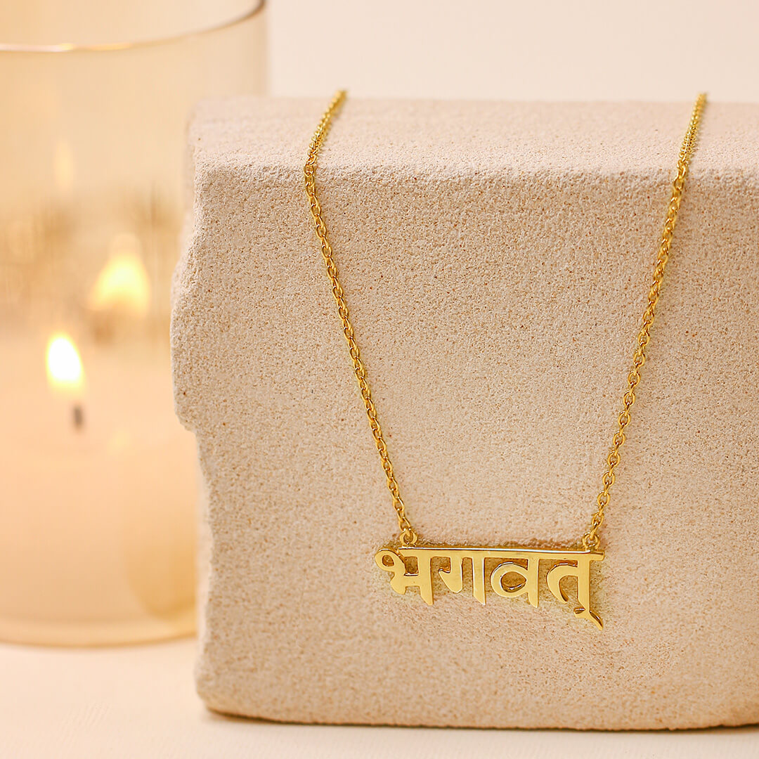 The spiritual power of the Sanskrit language is deeply revered and recognized for its unique vibrational energy. The ancient language, often referred to as the language of the Gods, holds profound significance in spiritual practices. In Sanskrit, the word ‘Blessing’ resonates with a divine vibrancy that touches the soul, amplifying our ability to manifest blessings, acknowledge grace, and cultivate a deep sense of gratitude. Our Blessing Sanskrit Mantra Necklace is not just an accessory; it’s a conduit for this divine energy. Intricately crafted with the Sanskrit word for ‘Blessed’, it serves as a tangible symbol of divine grace and a powerful tool for deepening your connection with the Universe.
