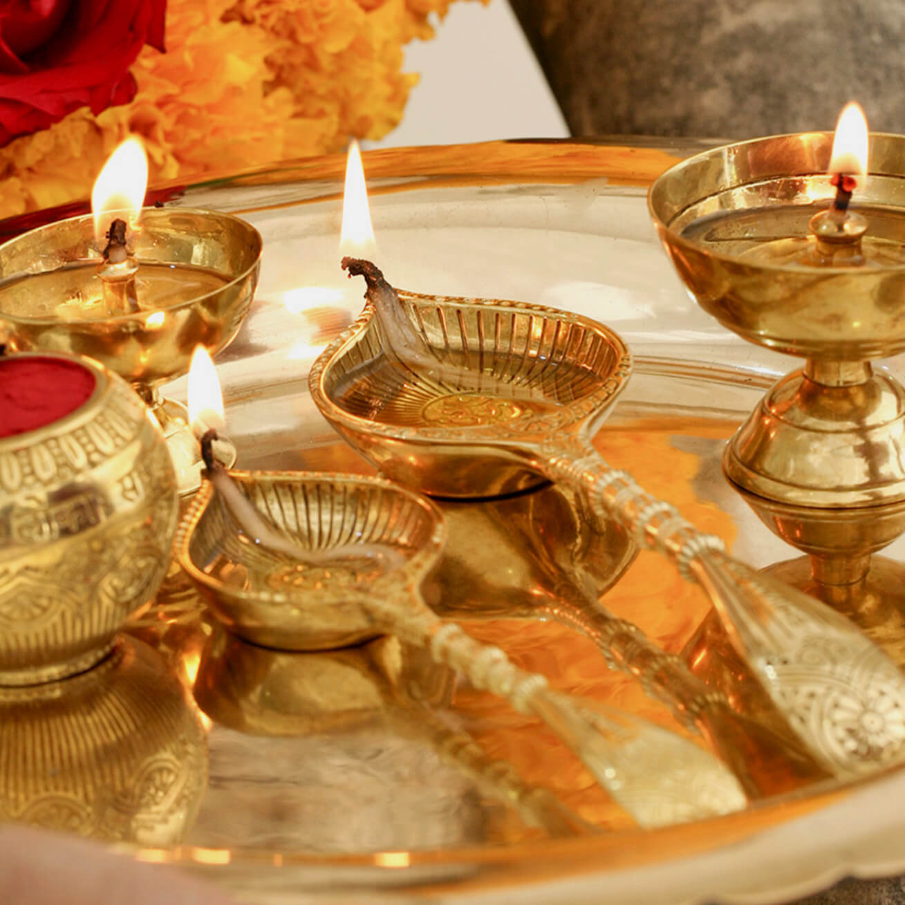 Arathi, an important ritual for worship, holds deep spiritual meaning. Derived from the Sanskrit word ‘Aratrika’, Arathi signifies the removal of darkness or ignorance and the emergence of light or wisdom. The ritual involves waving a lamp with lit wicks or camphor in a clockwise motion in front of a deity or sacred figure. The flame of the lamp symbolizes divine consciousness, purity, and the eternal truth. As the light is waved, it is believed that the energy of the deity is bestowed upon the devotees, removing negativity and bestowing blessings. The act of singing devotional mantras during Arathi further enhances the spiritual atmosphere, reinforcing faith and devotion. In essence, Arathi is a ritual of surrender, of offering one’s self to the divine and seeking enlightenment and protection.