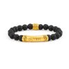This mantra bracelet is handmade by local artisans with lava stone and silver brass in our own production temple in Bali.