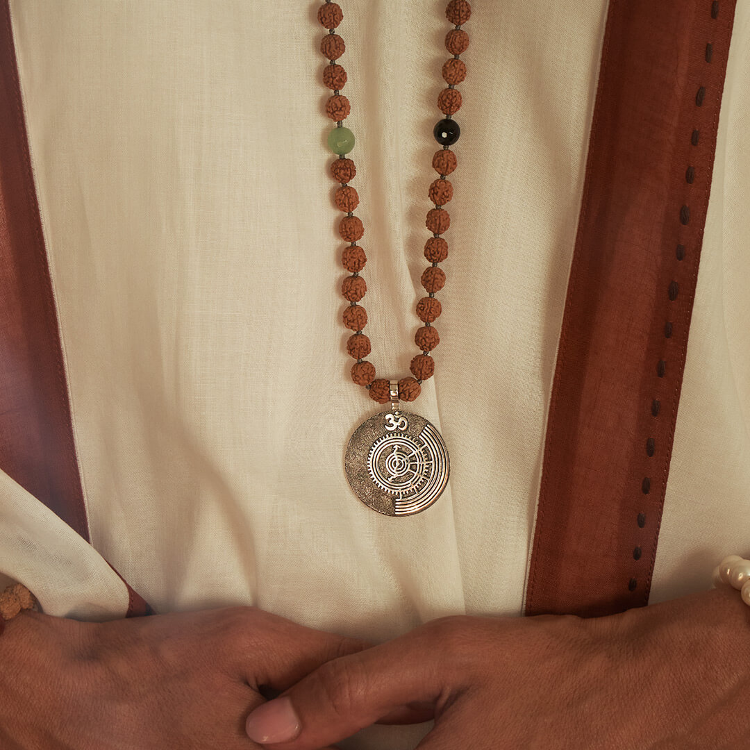 This mantra necklace is handmade by local artisans in our own production temple in Bali.