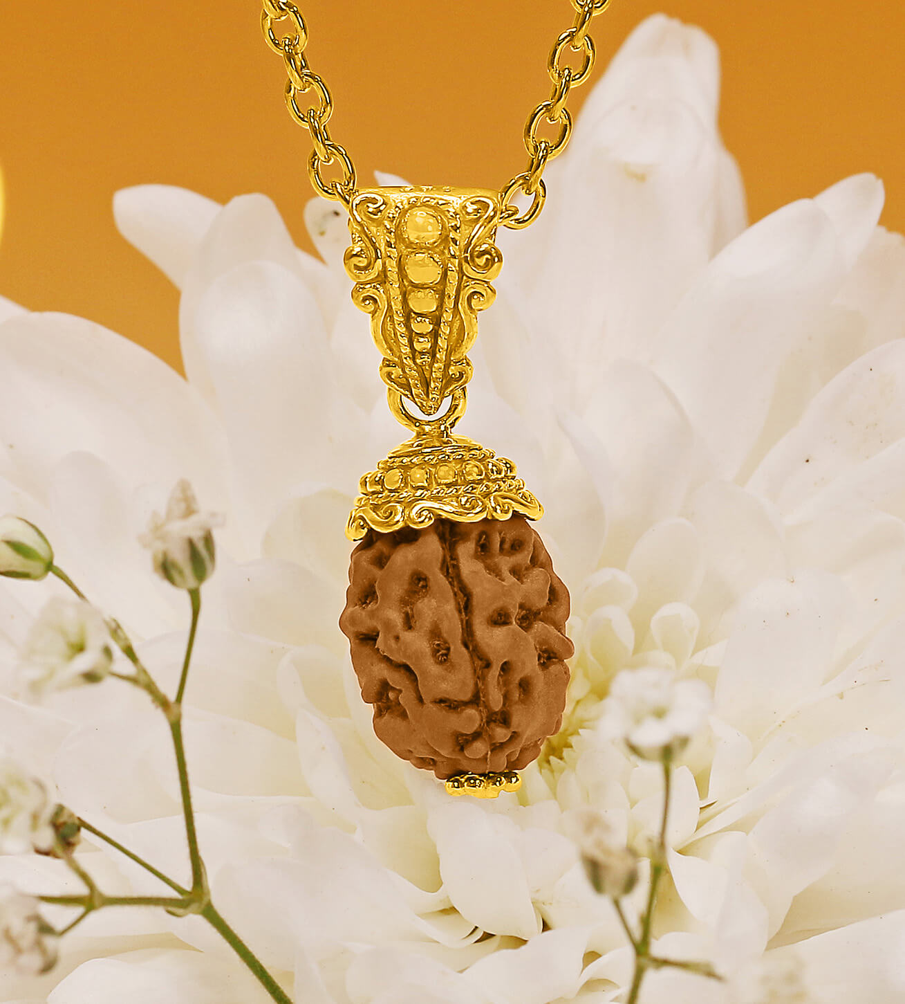 Our Healing & Purification 3 Mukhi Rudraksha Pendant features an activated & blessed 3 Mukhi Power Rudraksha Bead, handcrafted with protective and ornate cap.