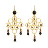 – made of 22 carat gold vermeil – fish hook earrings – length: approx 8cm / 3.5” – weight: 14 gr – 8 x 10mm faceted Onyx gemstone – dangling arrangement of 4mm sacred rudraksha, tiger’s eye and onyx – handmade in our production temple in Ubud, Bali