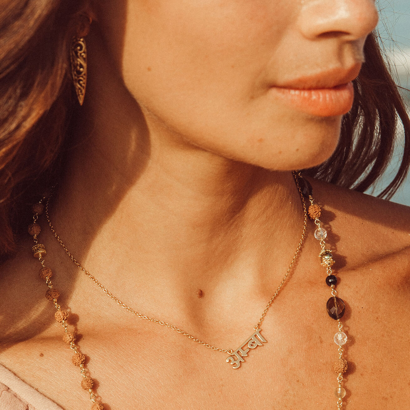 “I was looking for a piece of jewelry to celebrate becoming a mother but always found necklaces that spell out Mama in English a bit tacky. With this necklace in Sanskrit I feel I have found a perfect solution and it’s so pretty. :)”