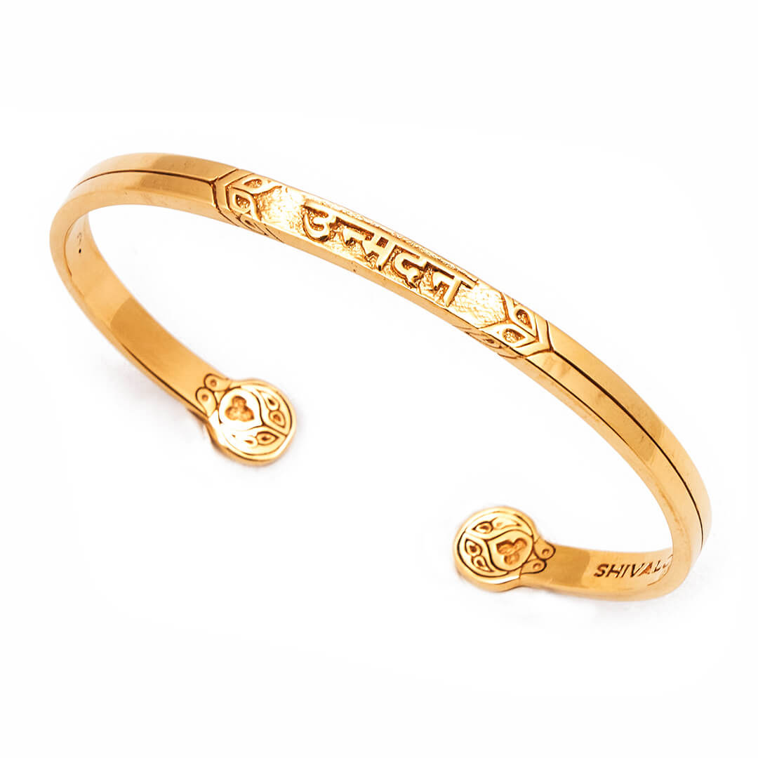 Experience the divine joy and heart bliss with our ‘Inflamed with Love’ bracelet cuff, elegantly inscribed with the Sanskrit word “Unmadana.” Crafted from 100% pure brass and available in either a lustrous 22k gold plating or a sophisticated silver finish, this bracelet is more than just an accessory. Unmadana, often translated as “intoxication” or “inflamed with love”, symbolizes a state of complete enrapturement and passionate involvement in love. It represents the intense emotional and spiritual fervor that fuels deep, authentic love, transcending the physical to touch the realm of spiritual connection and mutual soul recognition. This isn’t about fleeting infatuation, but rather an all-consuming love that can inspire personal transformation and spiritual growth. Wearing this bracelet serves as a beautiful token of love and adoration, a constant reminder of love’s power to uplift and deeply transform us. It’s not just a piece of jewelry, but a talisman that confers protection and brings blessings for love and relationships, embodying the profound implications of Unmadana.