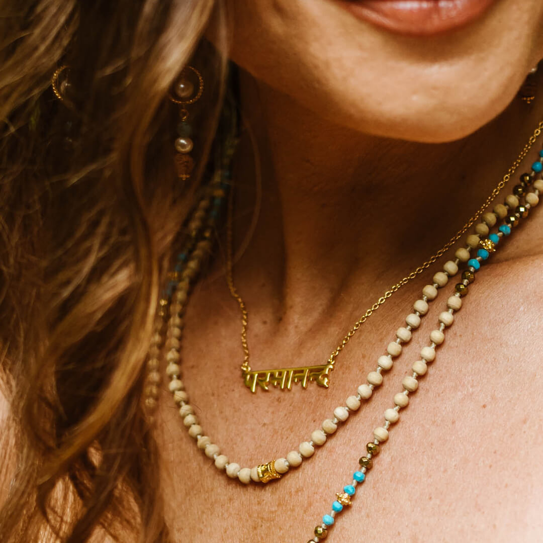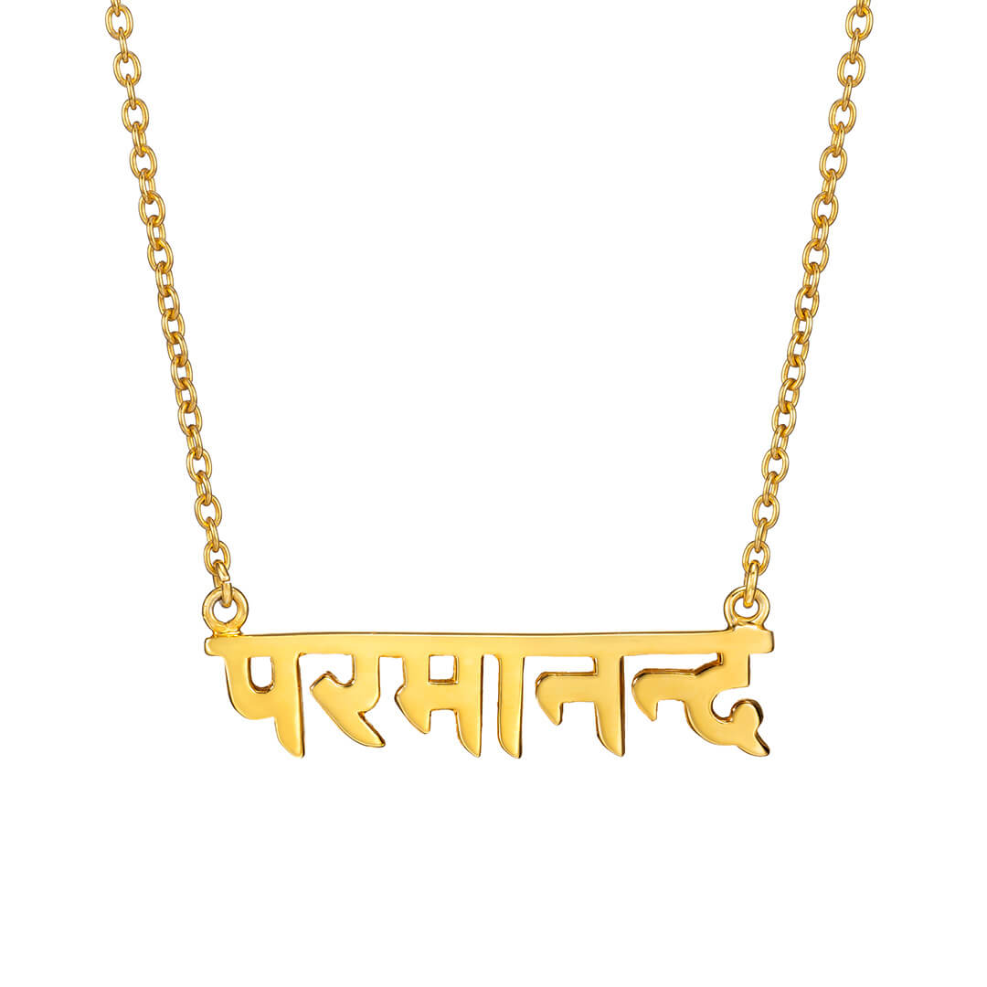 Are you yearning to embrace the profound state of Supreme Bliss, a bliss that transcends earthly worries and connects you deeply to your essence? Our Sanskrit mantra necklace “Supreme Bliss” embodies this divine joy. Just as the boundless sky holds the stars, Supreme Bliss is an infinite serenity that dwells within, elevating you above mundane concerns and fostering inner peace. This necklace is not merely adornment; it’s a sacred reminder of the harmonious energy that flows from embracing true bliss. Crafted with care, the delicate necklace features the Sanskrit words “Paramanada”, one of the 18 stages of enlightenment. Wear or gift this piece to envelop yourself or a loved one in the harmonious vibrations of Sanskrit, inviting the transformative power of Supreme Bliss into your life.