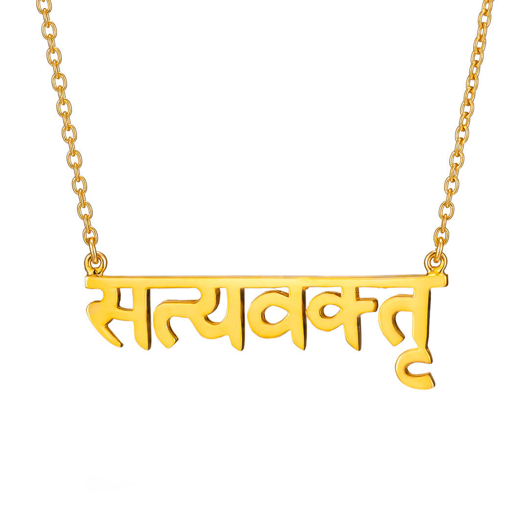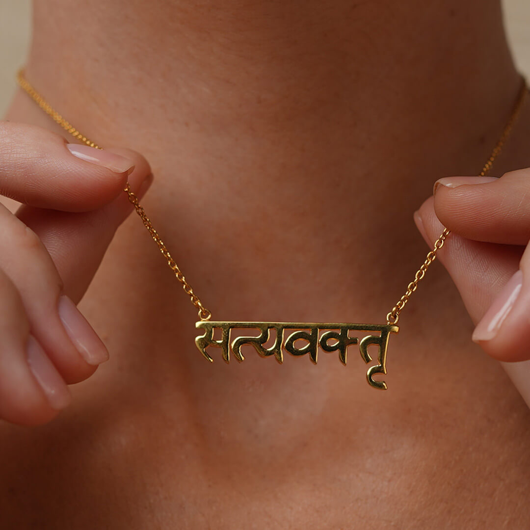 Experience Empowerment: The Truthspeaker Sanskrit Necklace doesn’t just adorn you, it empowers you. This unique piece serves as a personal power object, inspiring you to remain true to yourself, enhancing your personal strength and liberation.